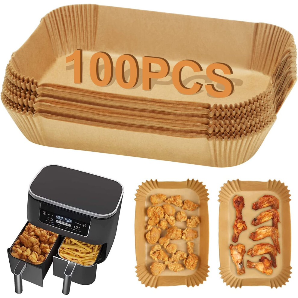 BYKITCHEN 100pcs Liners Ninja Dual Air Fryer Accessories Disposable Parchment Paper Liner Compatible Ninja Salter Tower Other Dual Zone Air Fryer