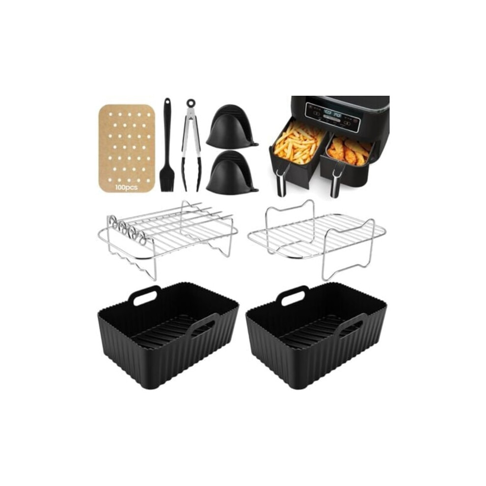 Air Fryer Accessories 9 Pcs Set for Ninja AF300UK AF400UK & Tower T17088 Dual Air Fryer Accessories Dual Silicone Air Fryer Liners & Gloves Dual Air