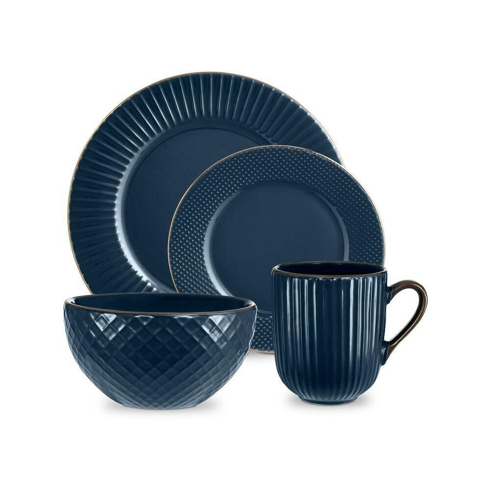 Tower Kitchen Retro Empire Midnight Blue 16 Piece Dinnerware Plate Mug Bowl Set
