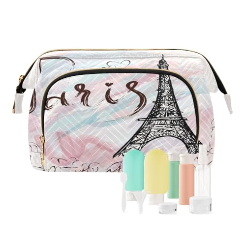 Paris Eiffel Tower France Water-Resistant Travel Toiletry Organizer Bag, Large Capacity Portable Cosmetic Storage for Gym/Daily Essentials
