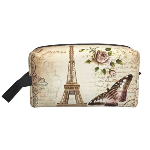 GaJher Large Travel Cosmetic Bag – Reusable Vintage Paris Eiffel Tower Butterfly Print Toiletry Dopp Kit, Portable Organizer for Makeup, Daily Essentials, White, One Size