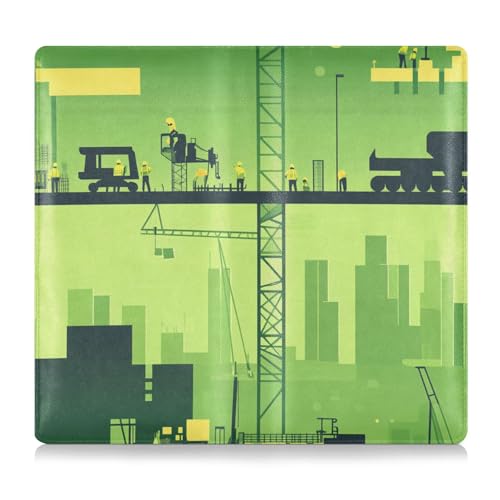 siphylline Construction Scene Plant Building Tower Crane Pu Leather Car Registration and Insurance Card Holder Prefect Car Essentials Wallet for Driver Auto Owners Trailer Motorcycle Boat