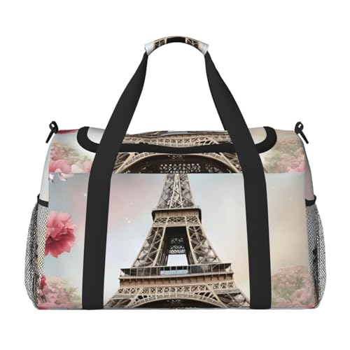 Carry On Duffle Bags Overnight Weekender Bags for Women, Eiffel Tower flower pink Personal Item Travel Bag, Travel Essentials Sport Gym Bag for Men Women