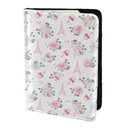 Leather Passport Holder Cover Case Eiffel Tower Rose Flower Print Eco-Friendly Genuine Leather Travel Essentials