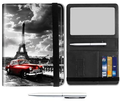 Passport Holder for Travel Essentials,Passport Wallet Cover Case with RFID Blocking,Leather Travel Documents Organizer Protector,Passport Case,Passport Holder for Women,, Tower and Cars -1972