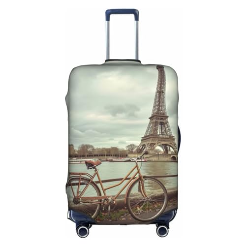 Hgvcse Travel Eiffel Tower Bike Luggage Cover Suitcase Protector 18-32 Inch Luggage Vacation Accessory Essentials, White, L