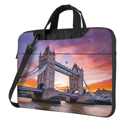 Slim Laptop Case with Strap Laptop Tote Bag Computer Messenger Bag Travel Essentials - Historic Old Tower Bridge London, Black, 14 inch