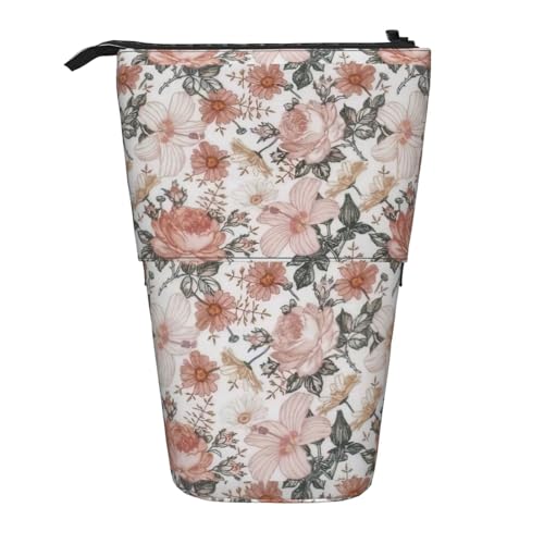 SHuWeiD Flower Paris Eiffel Tower print Vertical retractable case, fit for pens, cosmetics, and small essentials, daily use, Black, One Size, Fashion