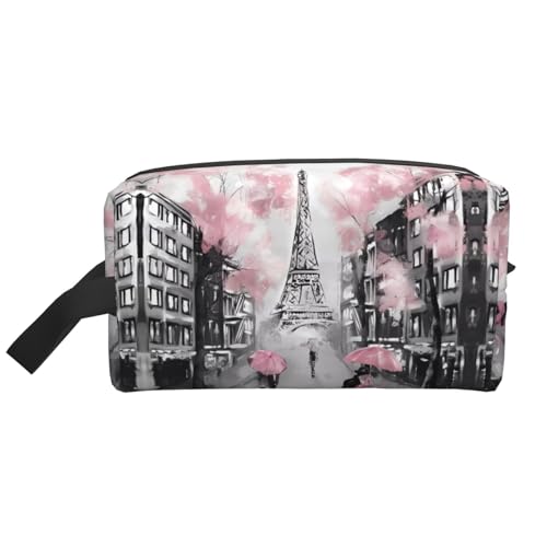 GaJher Large Travel Cosmetic Bag – Reusable Paris Street Eiffel Tower Pink Floral Print Toiletry Dopp Kit, Portable Organizer for Makeup, Daily Essentials, White, One Size