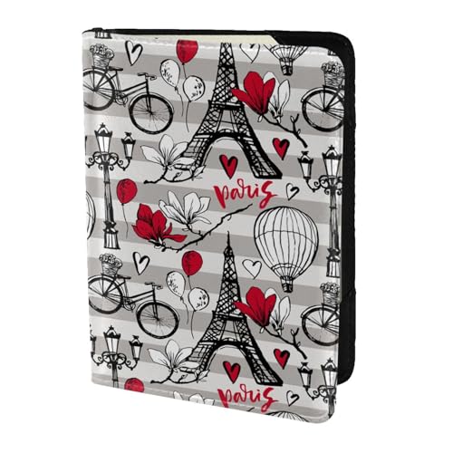 Leather Passport Holder Travel Women Men - Slim Eiffel Tower And Hearts Passport Wallet Cover Case, Travel Document Holder Holds, Document, Cards, Tickets, Id for Airport Essentials 5.5 Inch