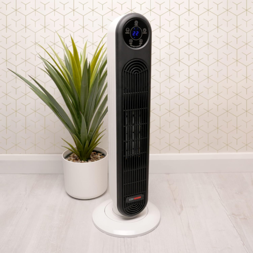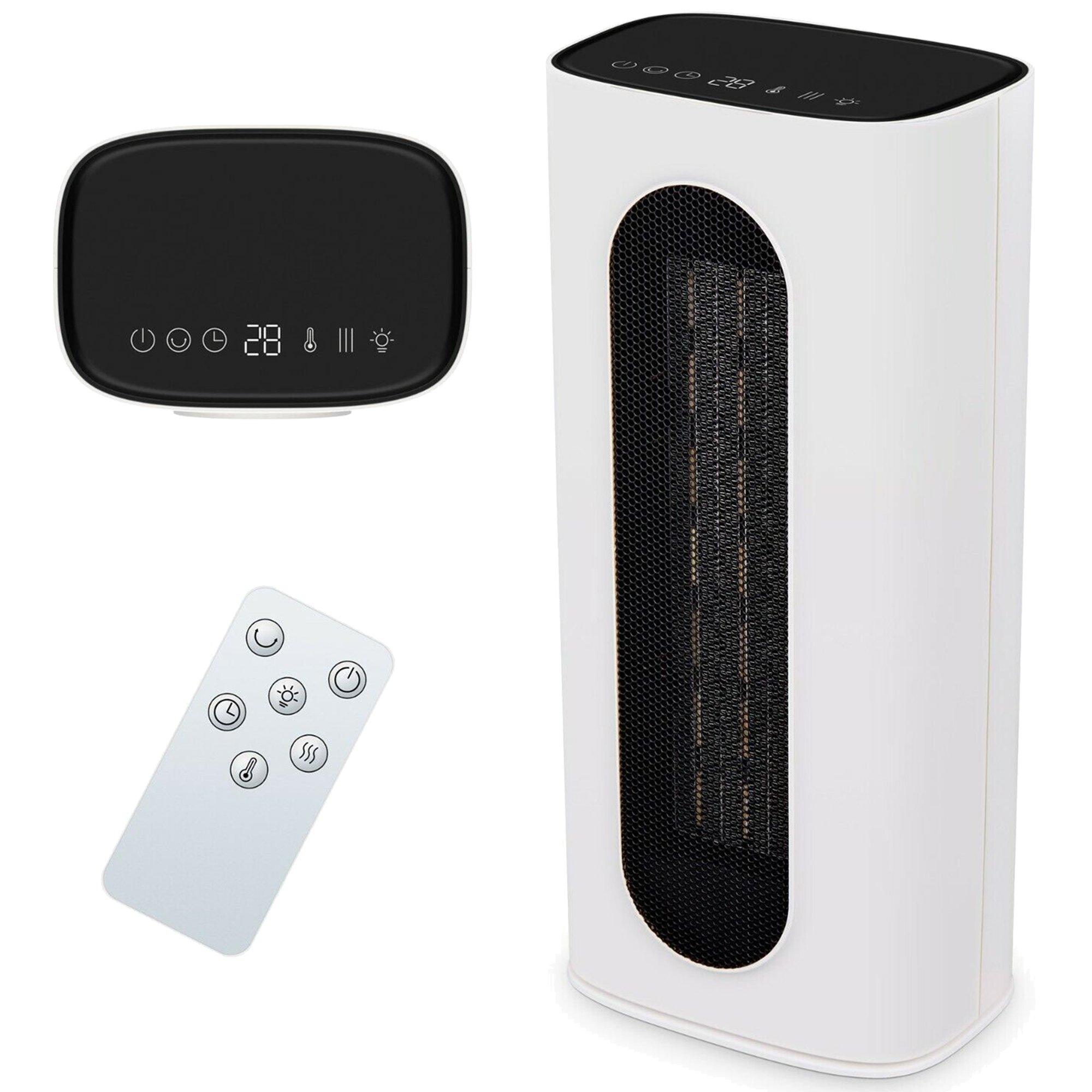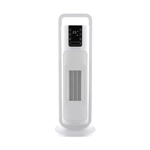 StayWarm 2000w Oscillating PTC Ceramic Tower Fan Heater with remote control, 2 Heat Settings, Cool Blow, 12 hr Timer, Digital Touch Screen, Tip-Over Switch - White- Black - F2252WH