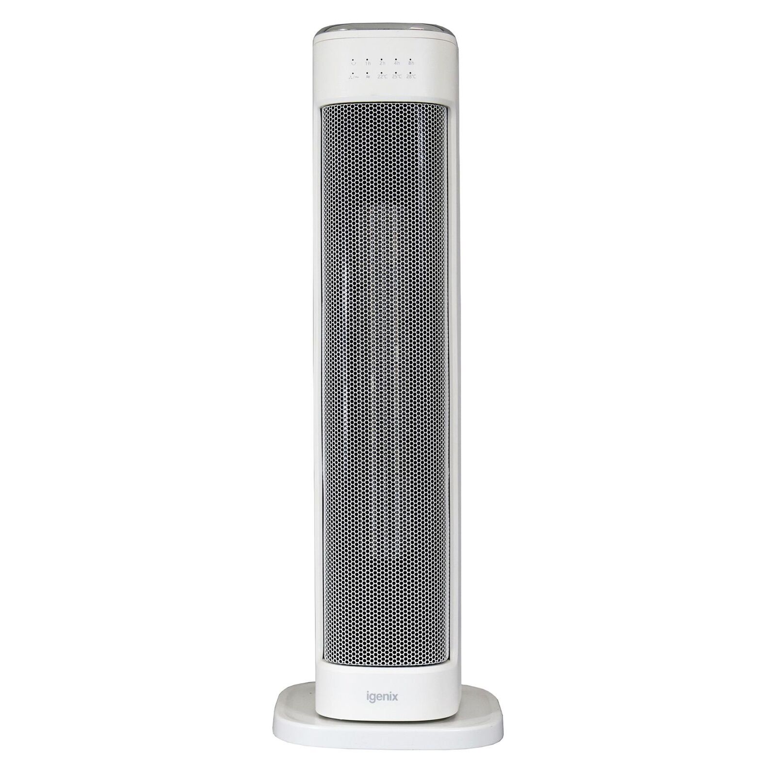 Oscillating Tower Fan Heater, 2000 W, 3 Heat Modes, White, Igenix IGHT020DW