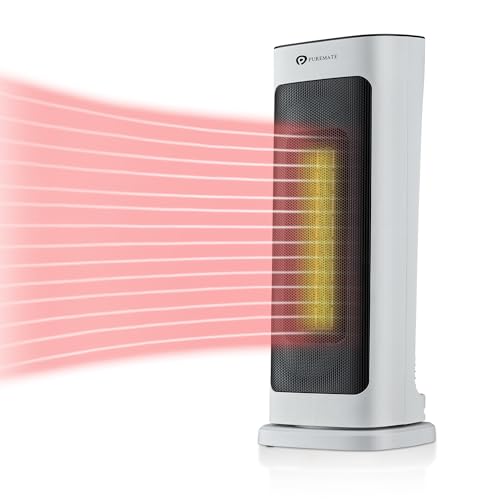 PureMate Ceramic Tower Fan Heater, 2000W Portable Electric Heater with 2 Heat Settings, Space Heater with Oscillating, Adjustable Thermostat & Safety Cut-Off, Tip-Over and Overheat Protection