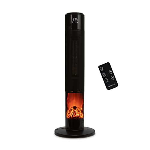 MONHOUSE Oscillating Tower Fan Heater with Fireplace 33 inches - Portable PTC Ceramic Electric Heater with LCD Display, Remote Control, Overheat Protection and Safety tip-over Switch - Black