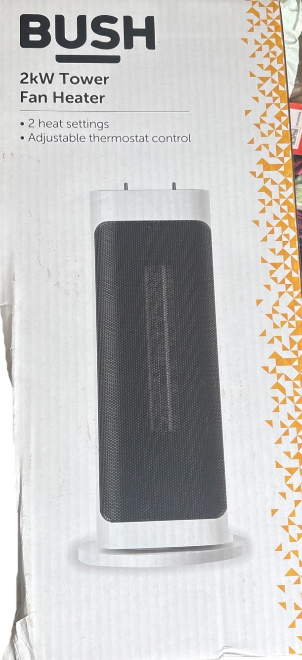 Bush Tower Fan Heater 2kW- Adjustable Thermostat 2 Heat Setting 2000W-NEW