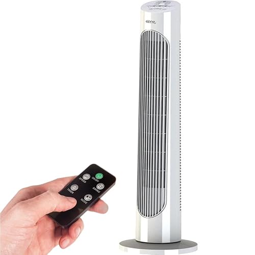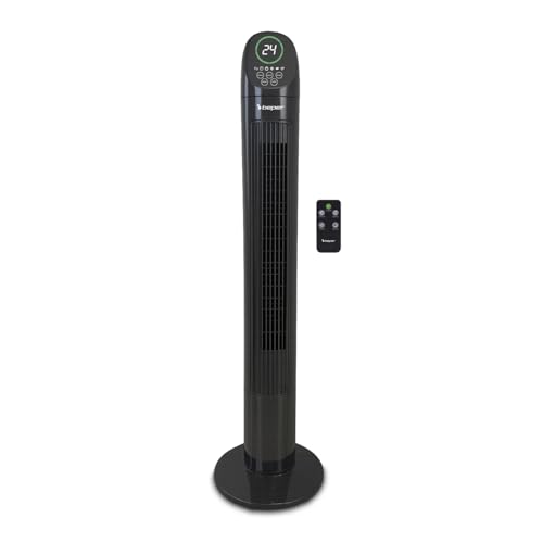 BEPER P206VEN310 Deluxe Digital Tower Fan with Remote Control, Quiet Tower Fan, 3 Speeds and 3 Modes, Oscillation, 7.5-Hour Timer, Stable Base