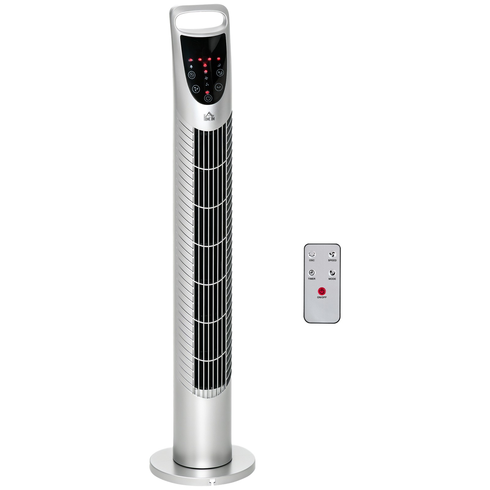 HOMCOM 78.5 cm Oscillating Tower Fan with Remote Control, 7.5H Timer, 3 Speed 3 Modes, Electric Floor Standing Cooling Fan for Home Bedroom Office, Silver