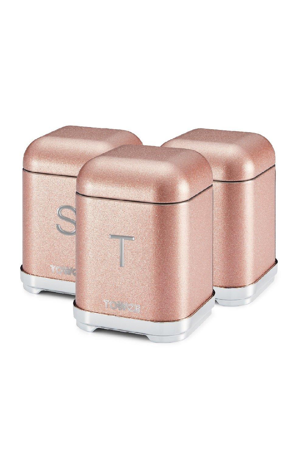 Tower T826015R Kitchen Storage Canisters, Glitz Range, Blush Pink, Set of 3