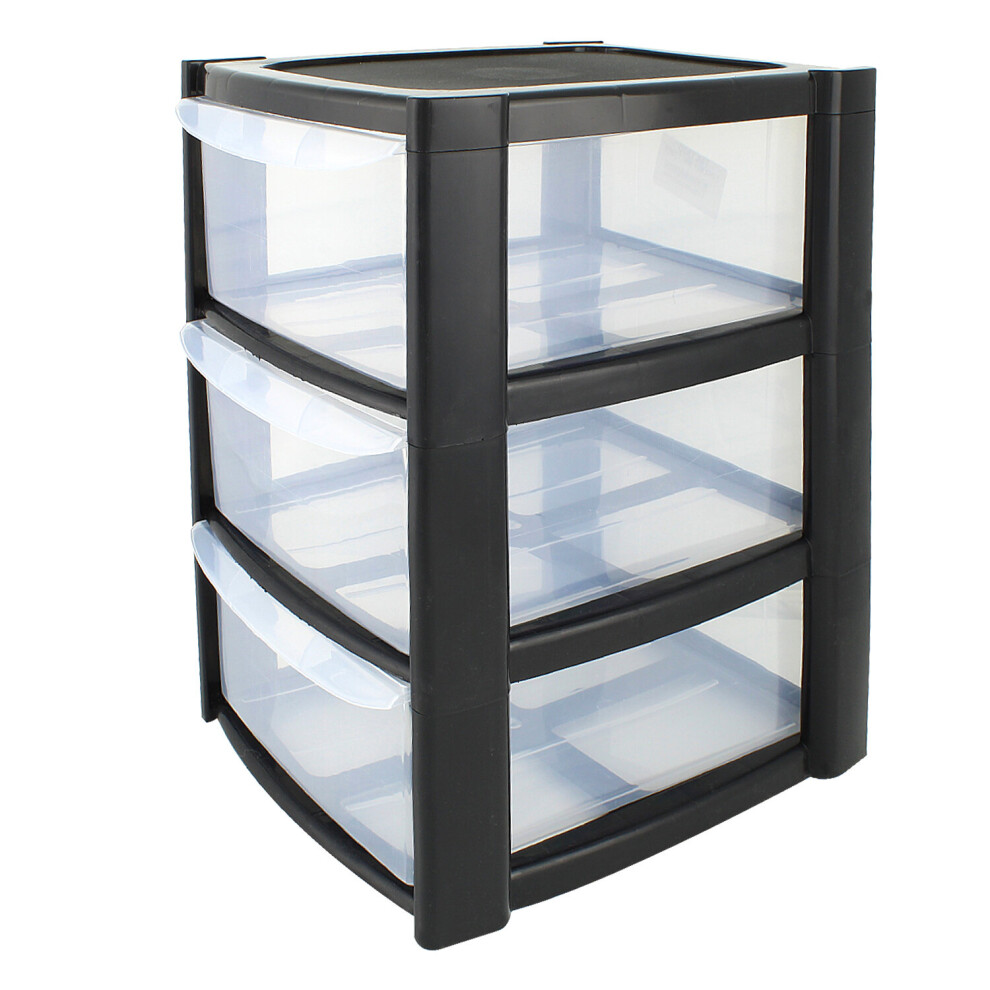 Mini 4 Drawer Plastic Storage Tower - Compact Desktop Organiser with Clear Drawers for Makeup, Toiletries, Stationery - Lightweight & Durable Storage Tower - Pink, Blue or Black, 40x26x19cm (Black)