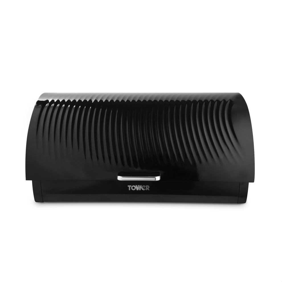 Tower Sonar Bread Bin T826219BLK (Black) â 16L Roll-Top, Ventilated Iron Bread Storage, Modern Kitchen