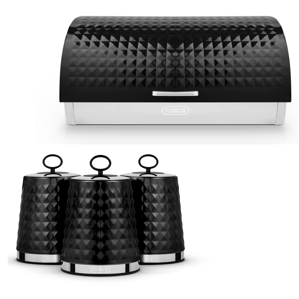 Tower Solitaire Black Bread Bin & Canisters Kitchen Storage Set