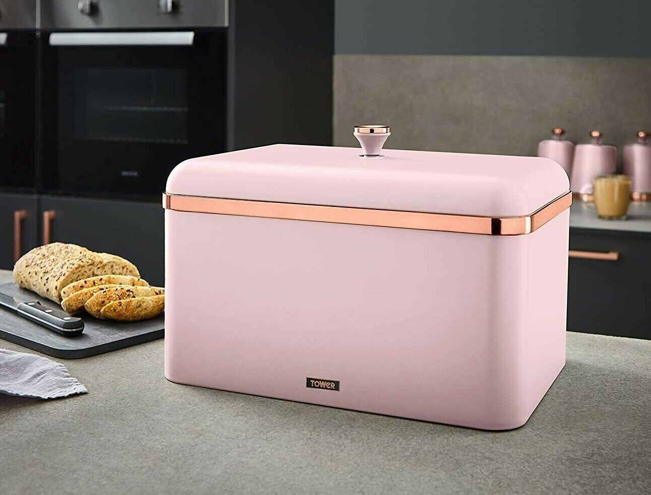 NEW Tower Cavaletto Pink & Rose Gold Bread Bin Kitchen Storage