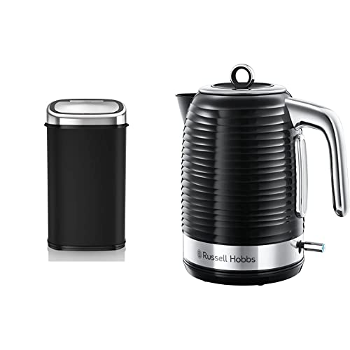 Tower T80900 Kitchen Bin with Sensor Lid, Touchless for Hygienic Waste Disposal, Infrared Technology, 58 Litre, Black & Russell Hobbs 24361 Inspire Electric Fast Boil Kettle, 3000 W, 1.7 Litre