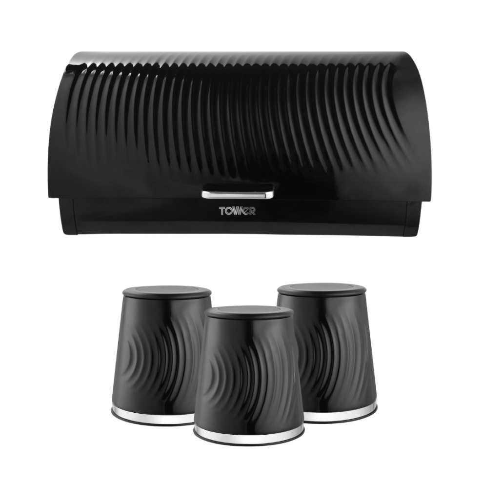 Tower Cavaletto Bread Bin & Canisters Storage Jars Kitchen Set (Black)