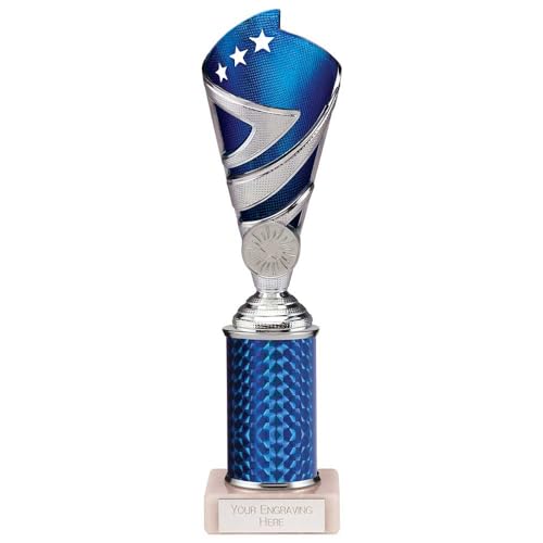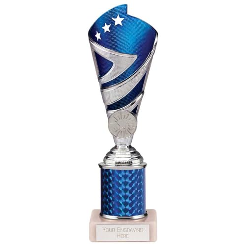 Trophy Superstore Hurricane Tower Silver & Blue Multisport Award Trophy - Free Engraving - Marble Base - 245mm D-60x16