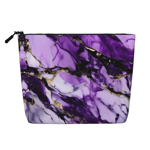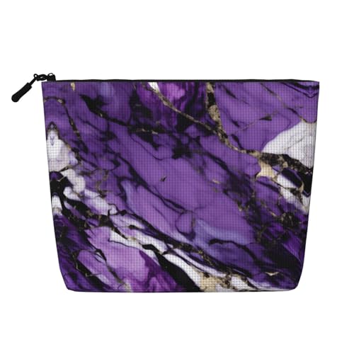 Romantic Paris Eiffel Tower Bycicle Printed Reusable Cosmetic Bag – Travel Toiletry Organizer, Zipper Pouch for Makeup Accessories, Purple Marble, One Size