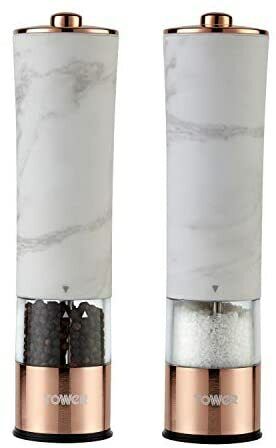Tower T847005WR Marble Rose Gold Electric Salt and Pepper Mill with LED Light,