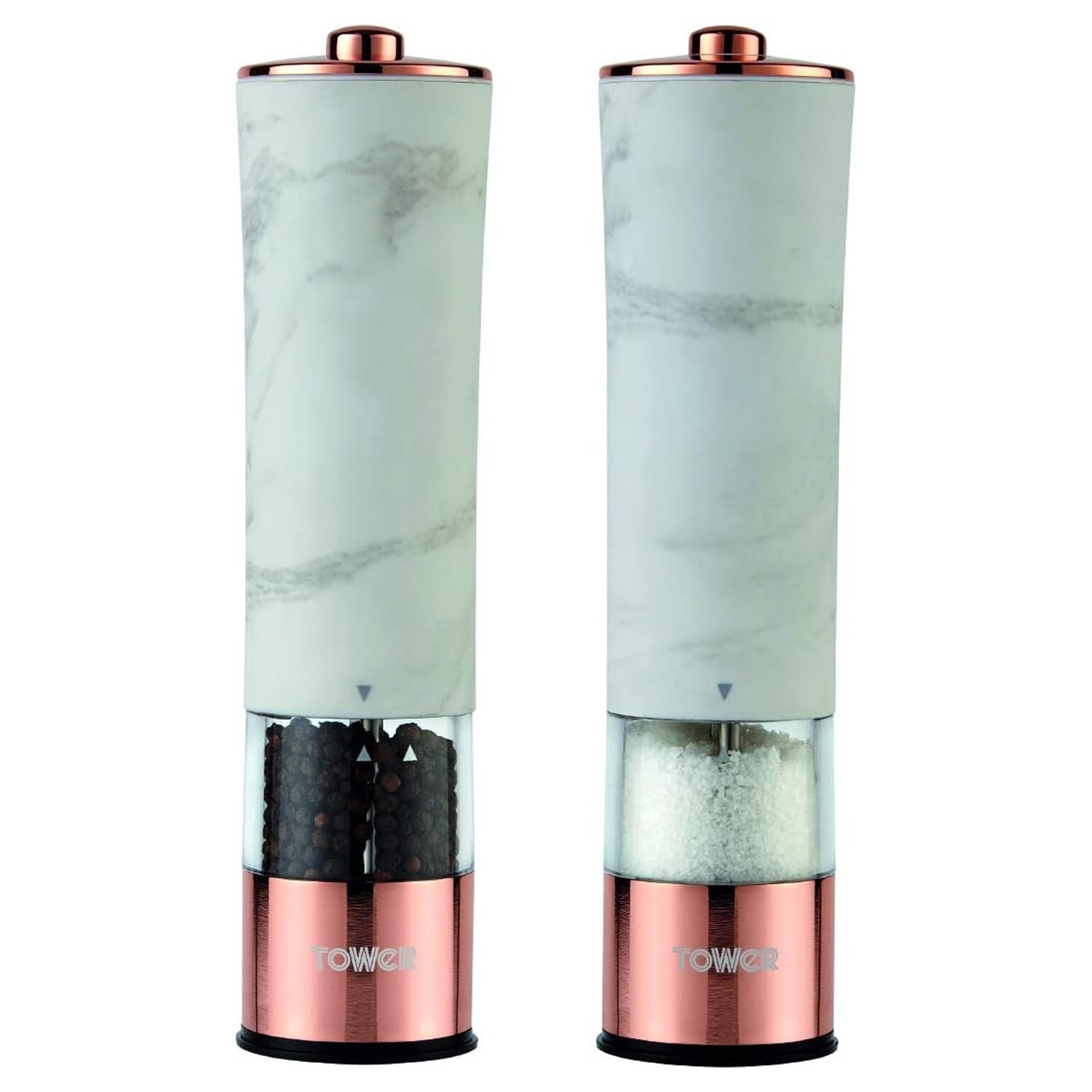 Tower T847005WR Marble Rose Gold Electric Salt And Pepper Mill With LED Light B