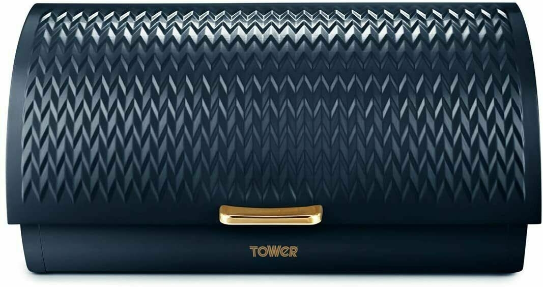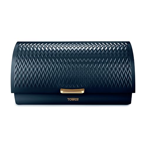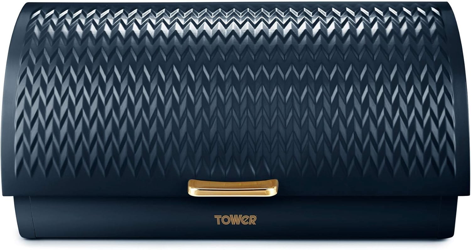 Tower Empire Roll Top Bread Bin Midnight Blue & Rose Gold -2 Year Guarantee