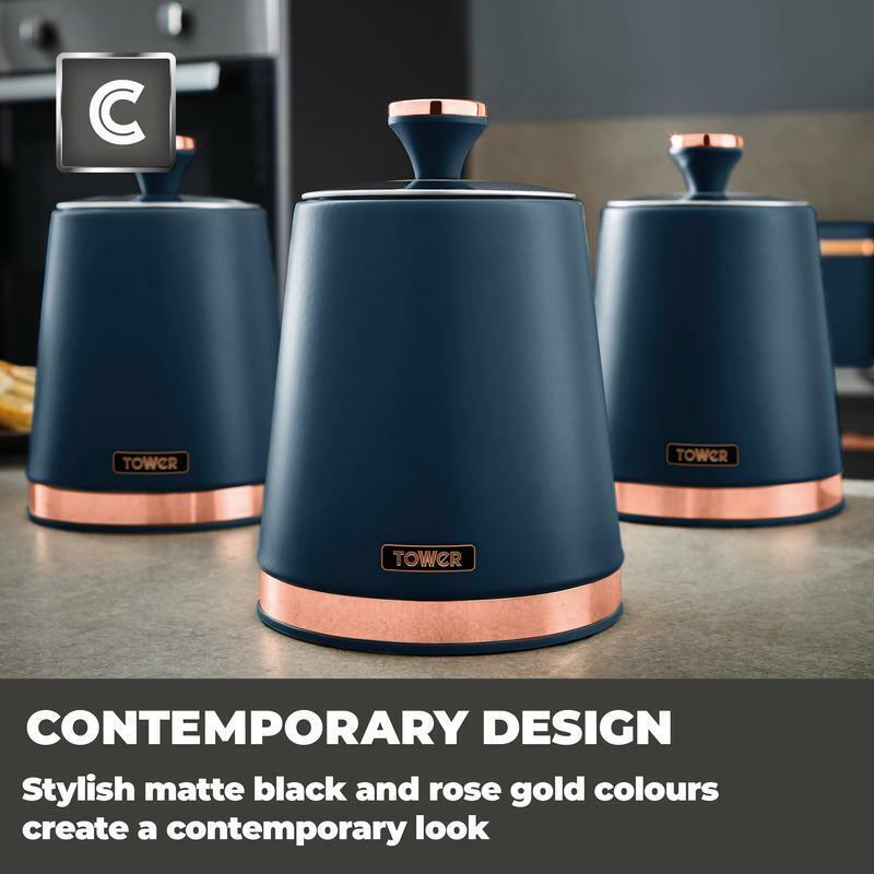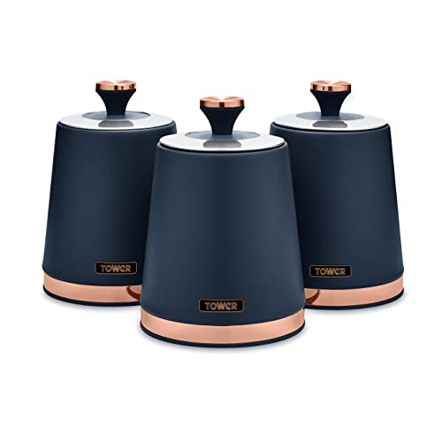 Tower T826131MNB Cavaletto Set of 3 Storage Canisters for Tea/Coffee/Sugar, Steel, Midnight Blue and Rose Gold