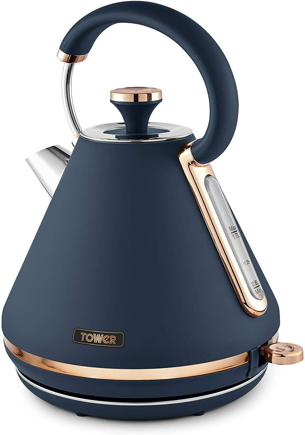 Tower T10044MNB Cavaletto Pyramid Kettle with Fast Boil, Detachable Filter, 1.7 Litre, 3000 W, Midnight Blue and Rose Gold