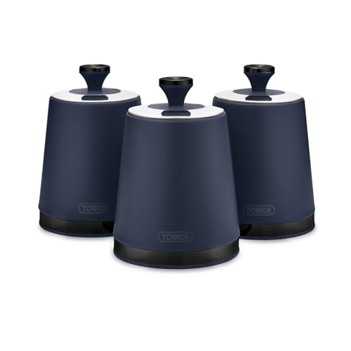 Tower T826137BLU Sera Set of 3 Canisters Midnight Blue with Smoked Trims, Stainless Steel