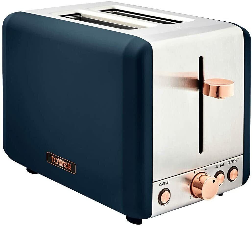 Tower T20036MNB Cavaletto 850W 2-Slice Toaster, Midnight Blue & Rose Gold - New