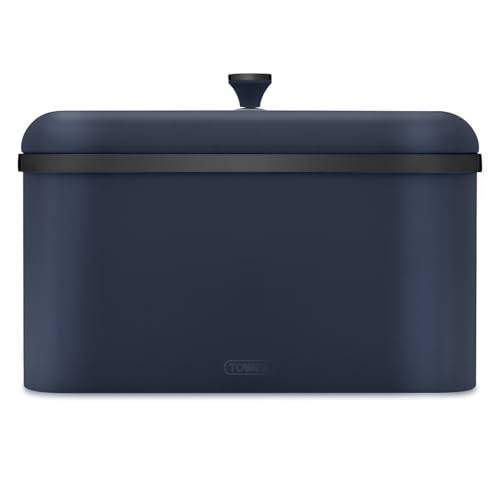 Tower T826136BLU Sera Bread Bin Midnight Blue and Smoked Trim, Stainless Steel