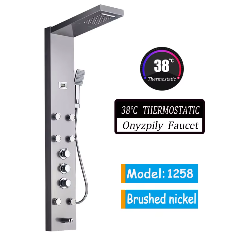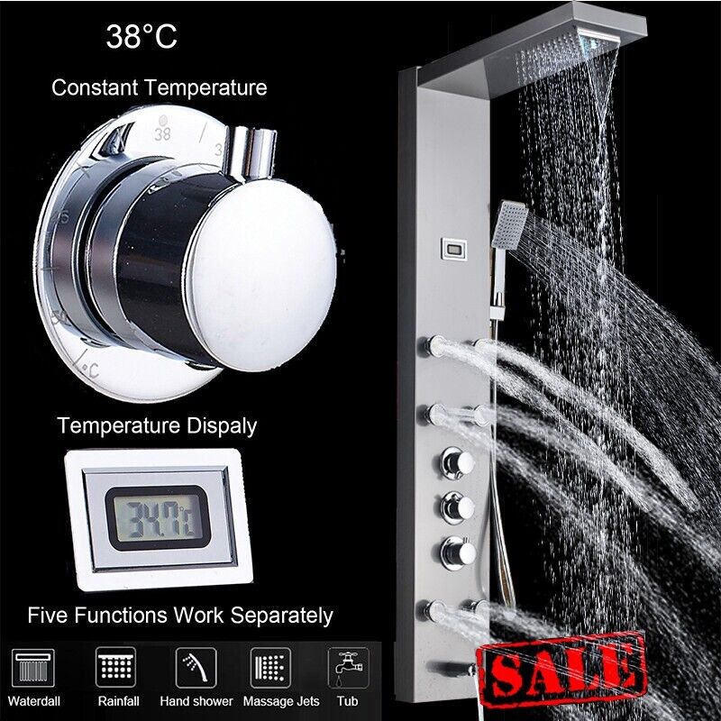 Thermostatic Shower Panel Column Tower Stainless Steel Mixer Tap Massage Jet