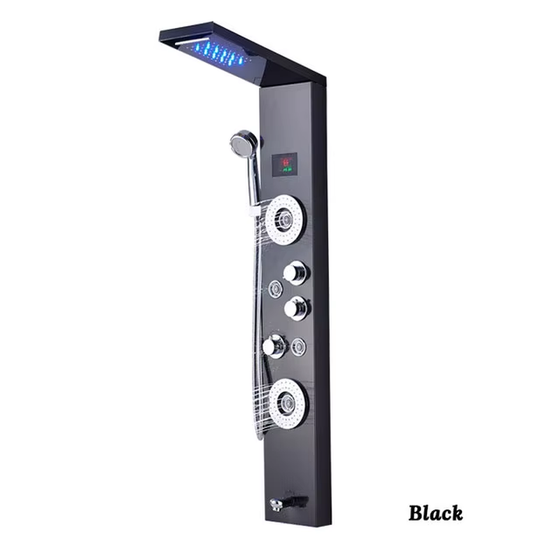 Luxury Black/Brushed Bathroom LED Shower Panel Tower System Wall Mounted Mixer T