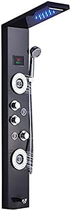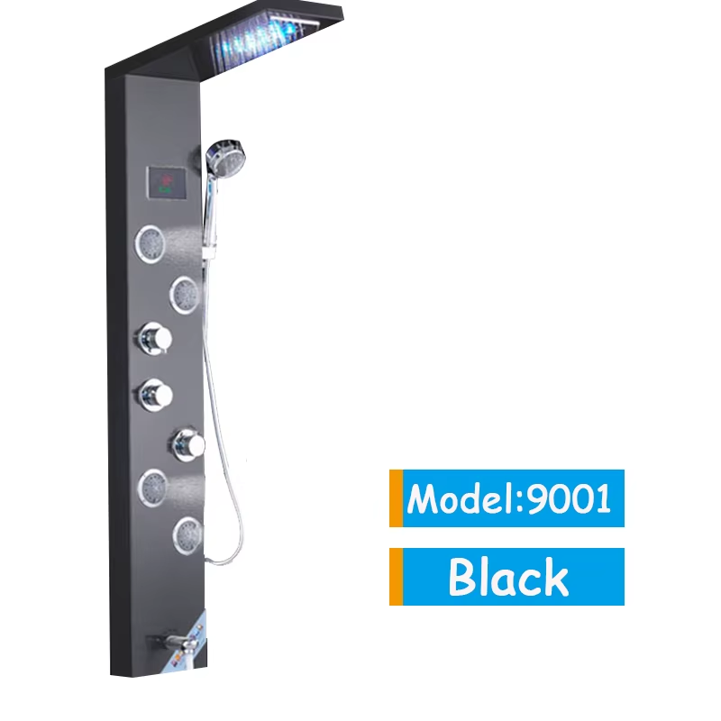 Stainless Steel LED Shower Panel Column Tower Black Shower Mixer Massage Spa Jet