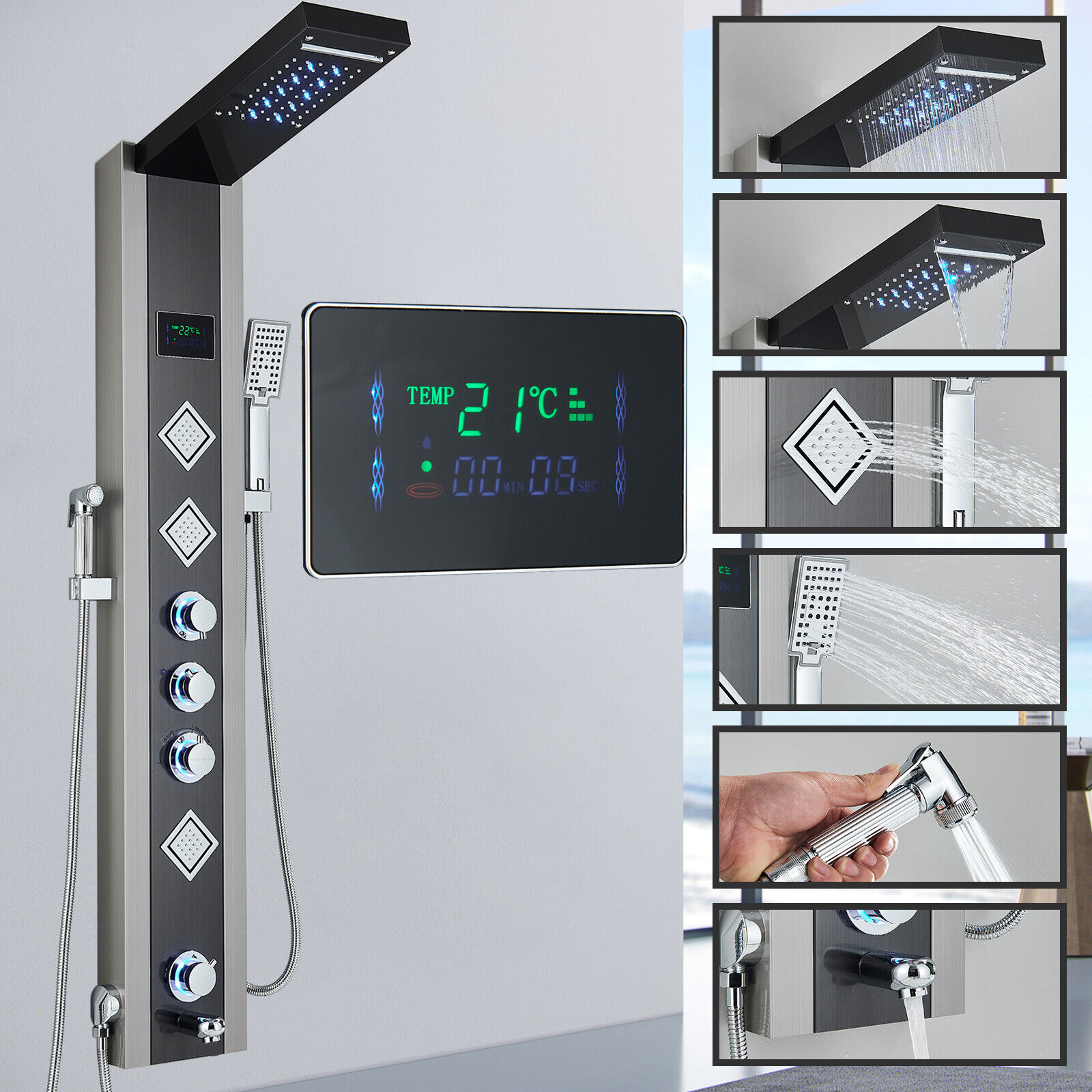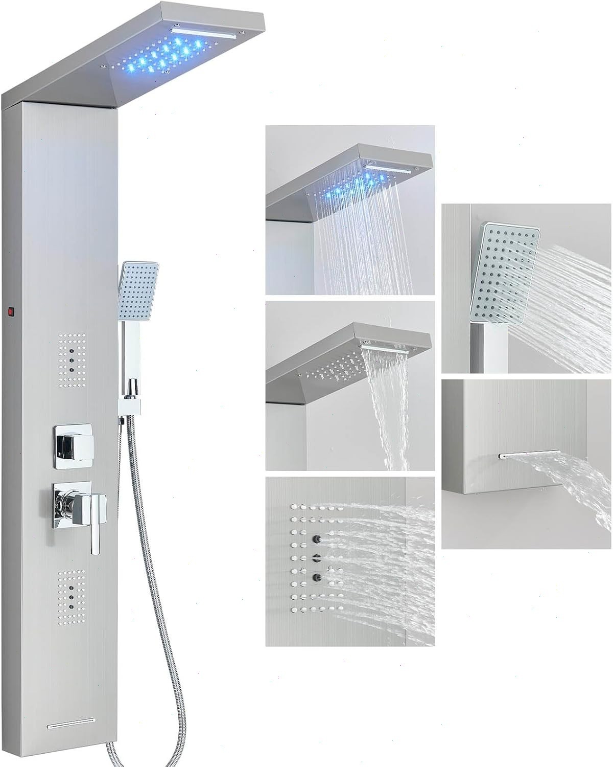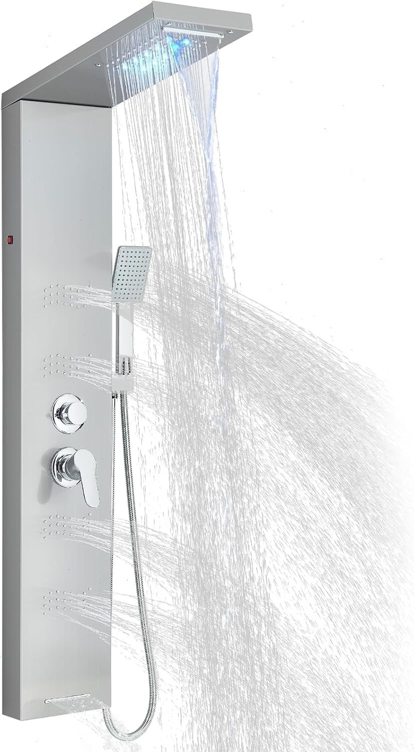 Shower Panel Column Tower LED stainless Body Jets Waterfall Bathroom Mixer Taps