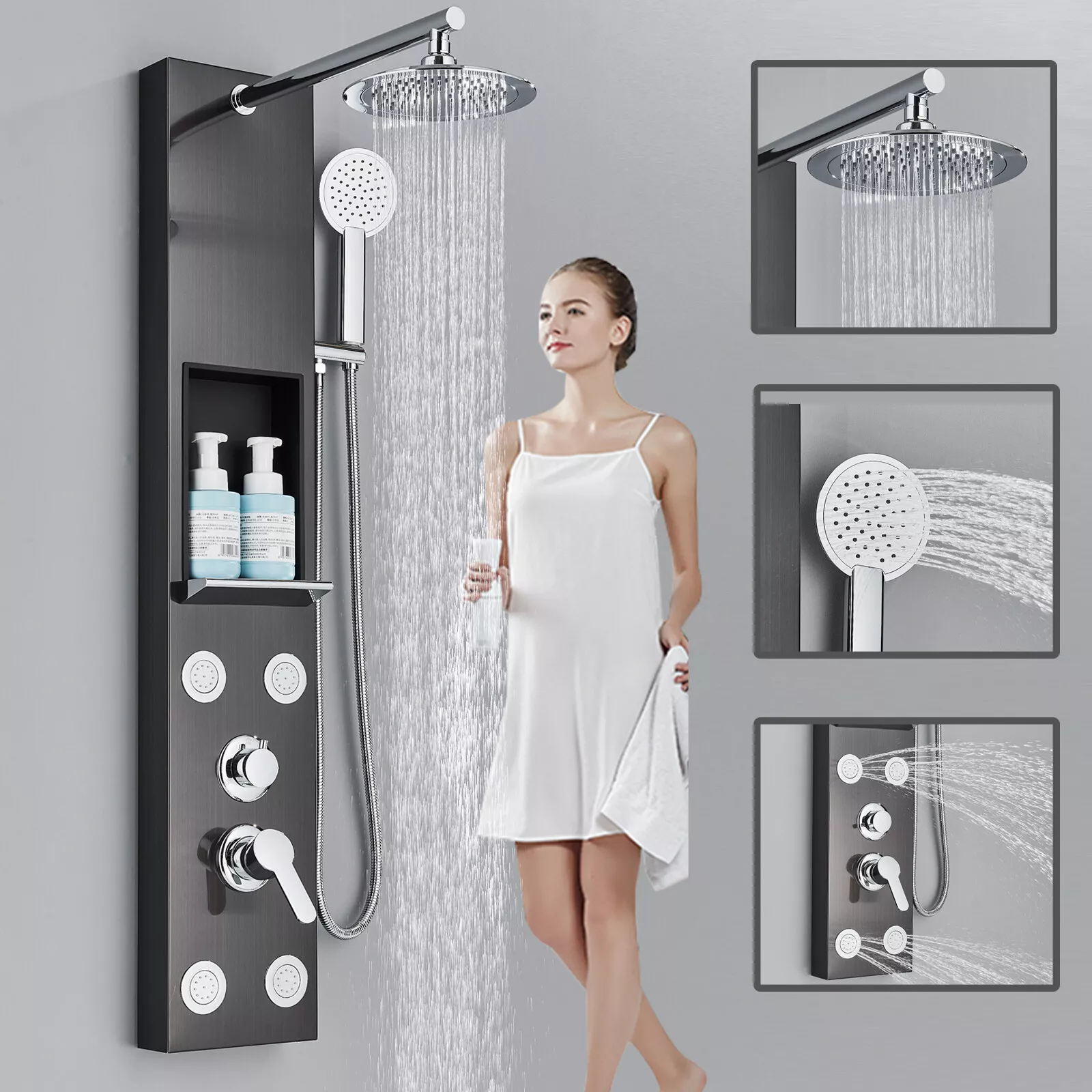 Shower Panel Column Tower Mixer Rain System Massage Body Jet Stainless Steel Tap