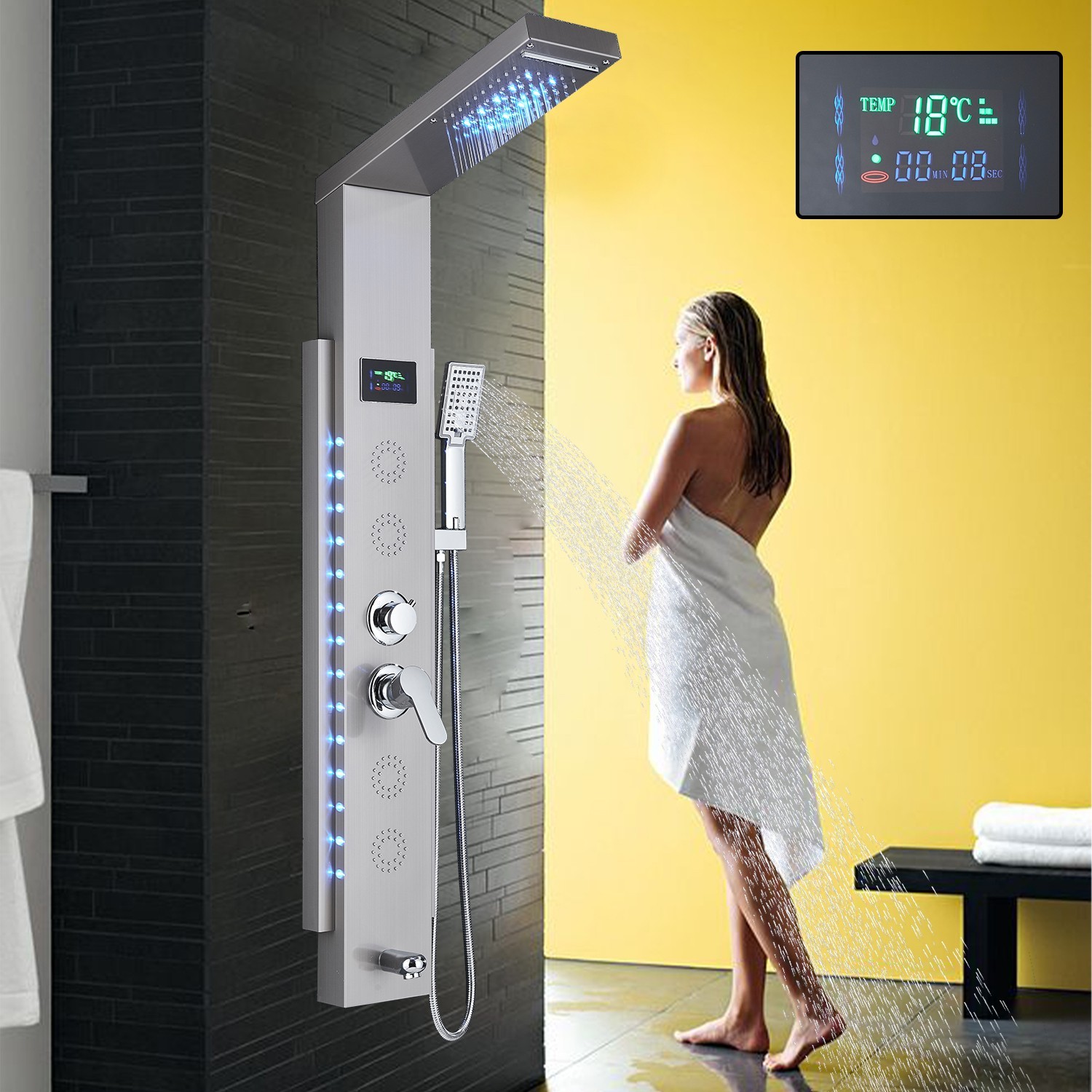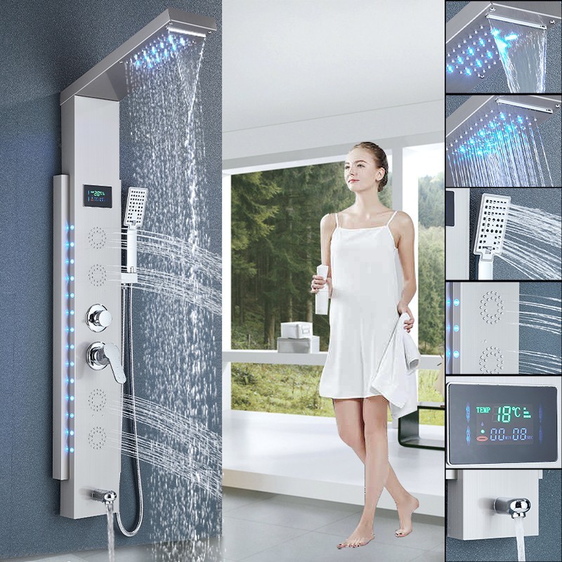 LED Shower Panel Column Tower Massage Body Jets Stainless Steel Rain Mixer Taps