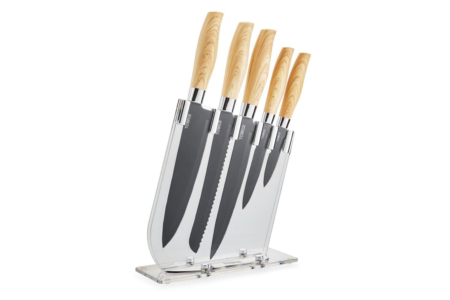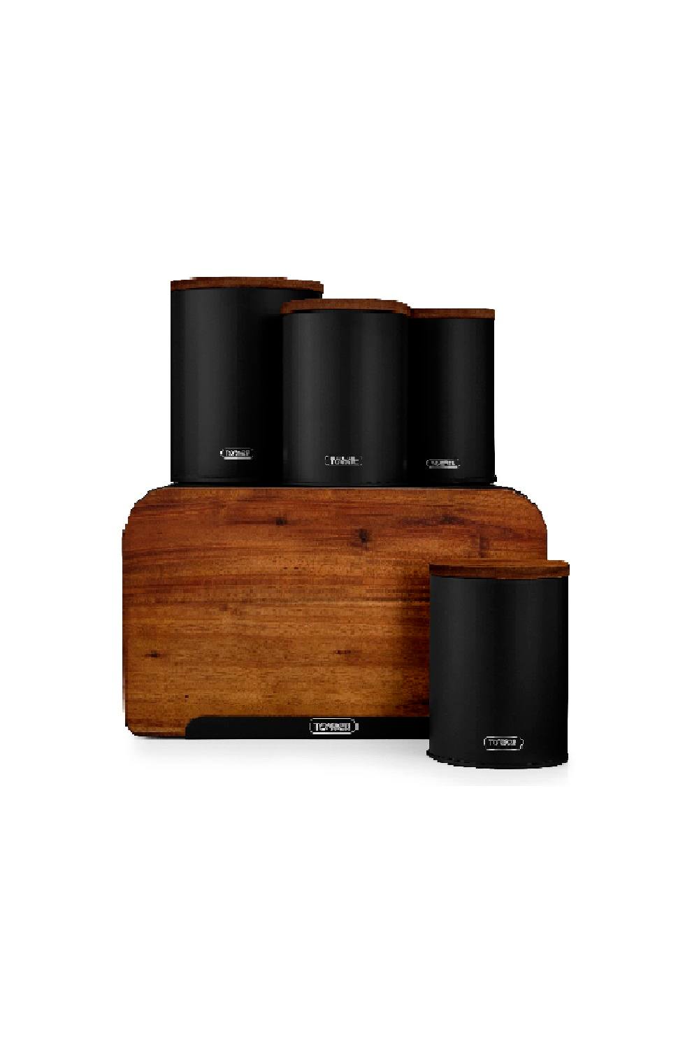 Tower T826140BLK Scandi 5 Piece Acacia Wood Storage Set with Bread Bin, Biscuit Barrel, Canisters, Black