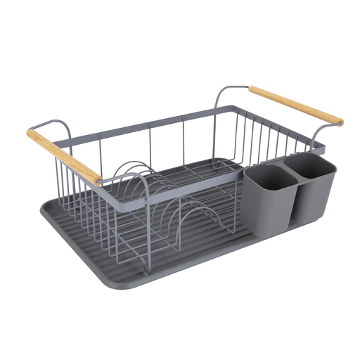 Tower Scandi T847009GRY Dishrack with Wooden Handle, Grey