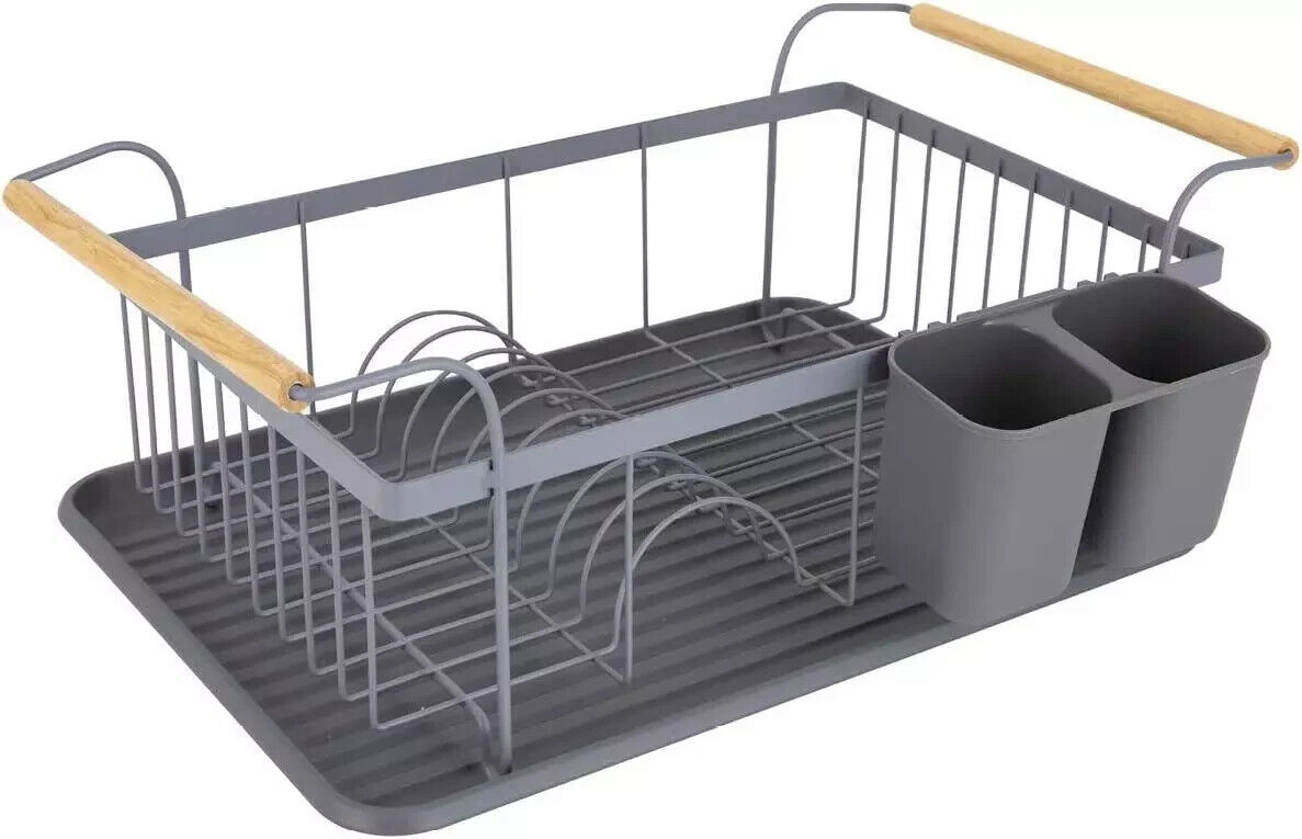 Tower Scandi T847009GRY Dishrack with Wood Handle for 9 Full Sized Plates, Grey