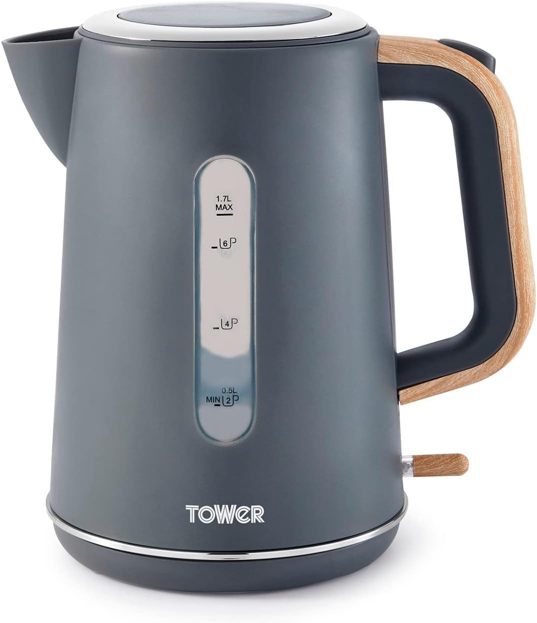 Tower Grey Kettle Rapid Boil Scandi Wood Accents 3kW Quick Boil Cordless