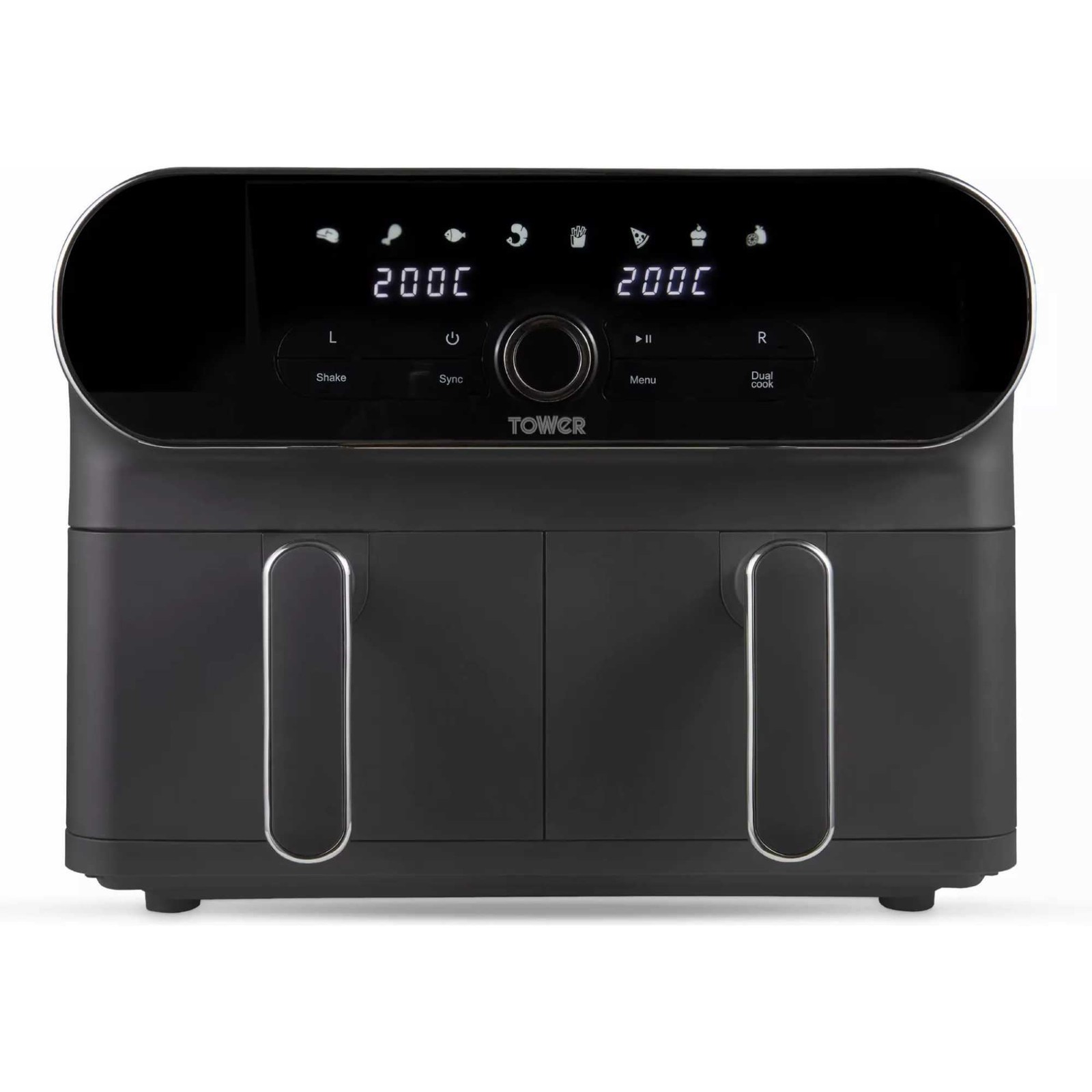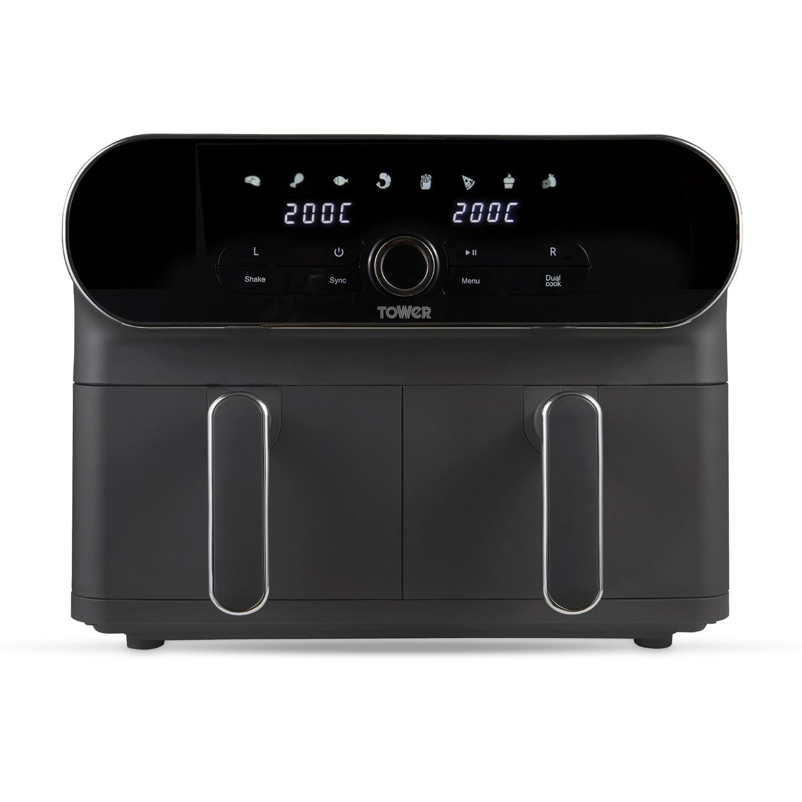 Tower T17138 Vortx Elite 10.4L Dual Basket Air Fryer with Sync Finish, 1700W, Graphite with Chrome Accents