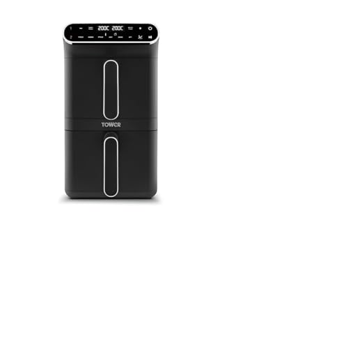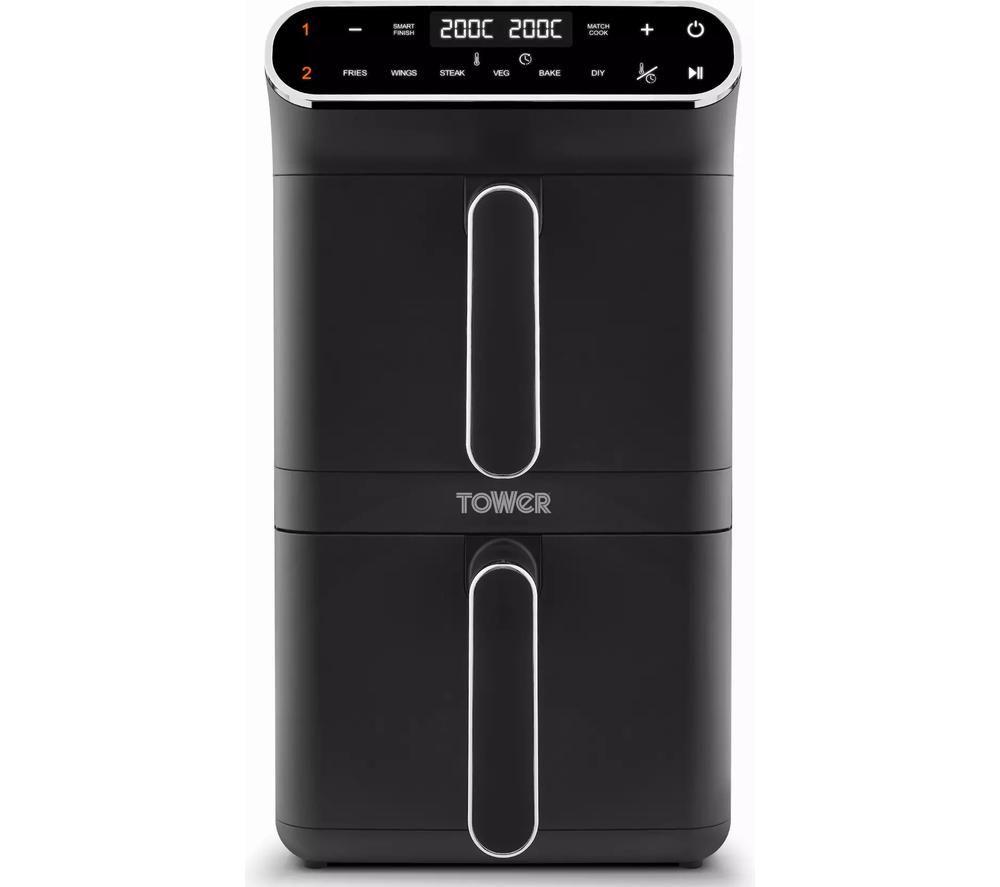 Tower T17190 Vortx XL Dual Stack Air Fryer with Digital Control Panel, Space Saving Design, 6 Preset Cooking Modes, Match Cook & Smart Finish Functions, Dual Baskets, 2460W, 11L, Black